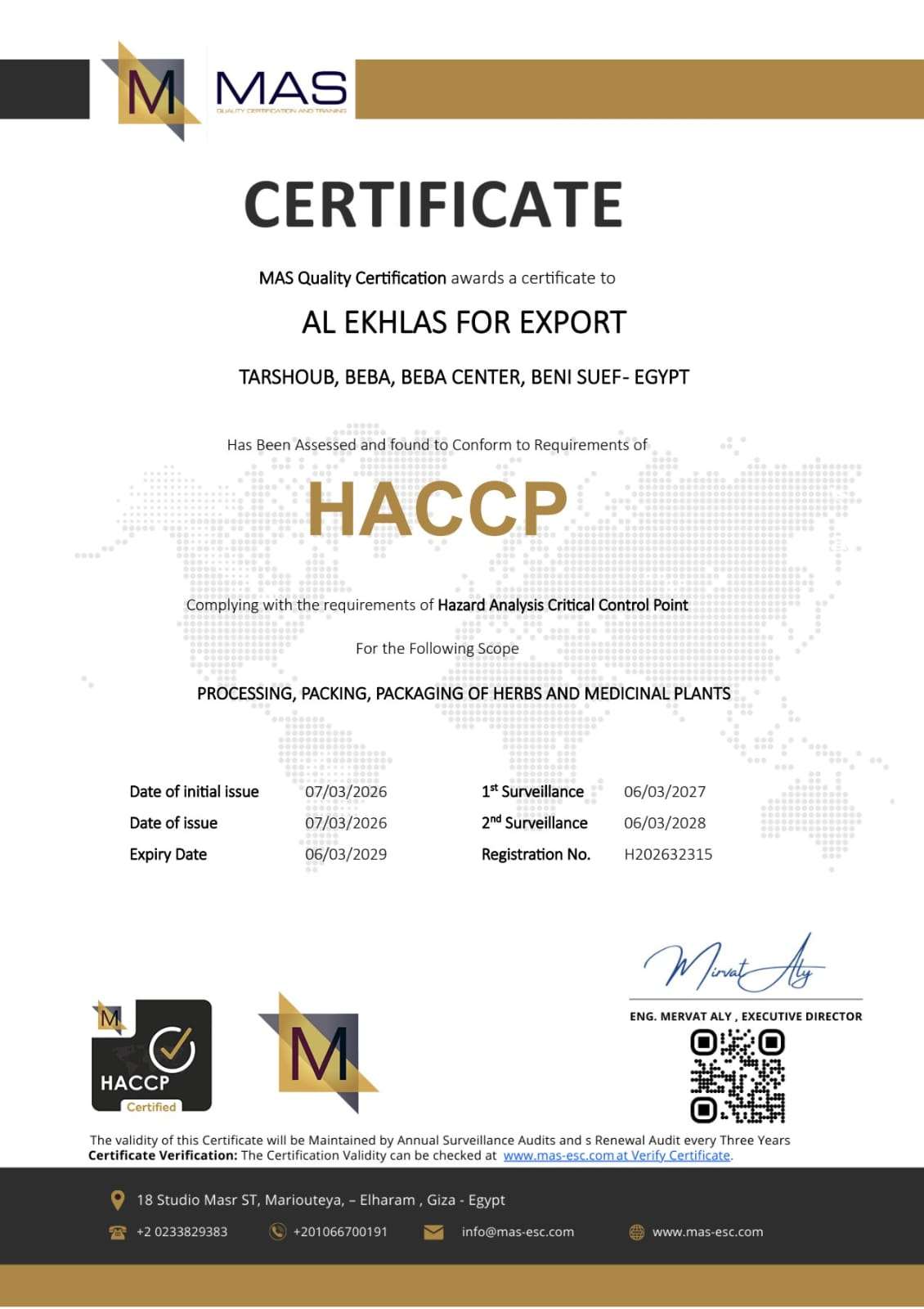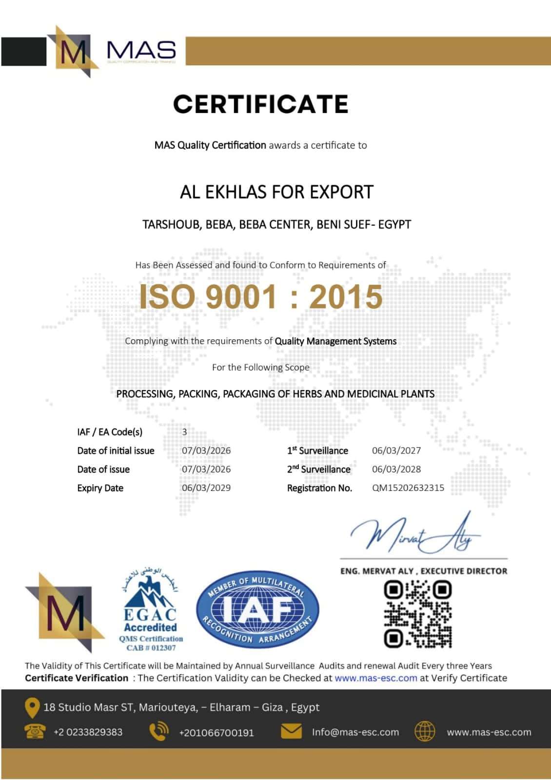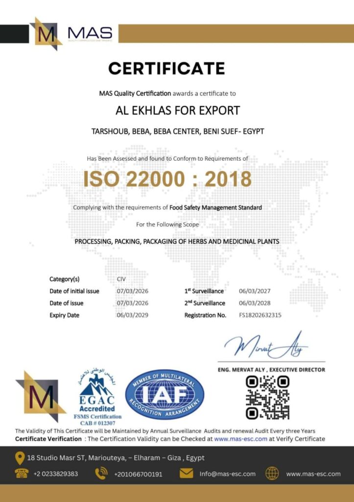 Al Ekhlas Company is a leading Egyptian specialist in the production and export of high-quality herbs, aromatic plants, spices, and seeds, distinguished by owning private farms that ensure full quality control as direct producers rather than mere intermediaries. We are committed to providing a wide range of high-purity products in various forms that meet all international manufacturing and sterilization requirements, leveraging our deep expertise to offer commercial solutions that combine superior quality with competitive pricing for our global clients. Furthermore, we constantly aim to open new export horizons, focusing specifically on meeting the demands of the European Union and South American markets to deliver the finest Egyptian products to international markets.